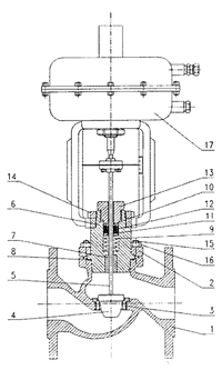 - Single seat valve with contoured plug and pneumaticactuator 300 cm2